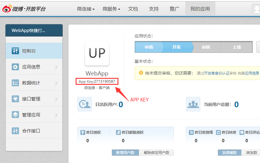 2. 进入刚刚创建的应用,将 APP KEY 复制到打包平台。